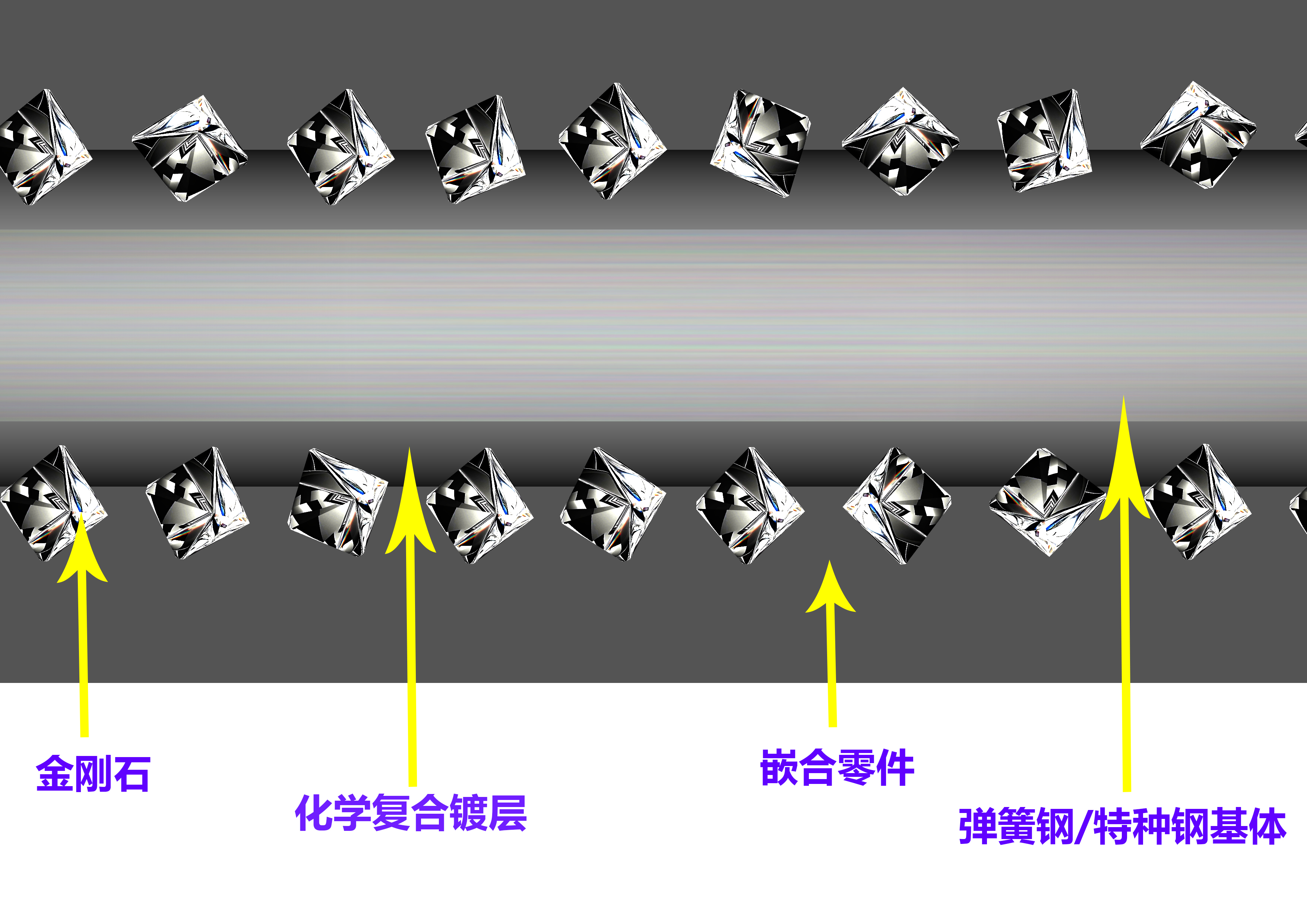 它的结构并不复杂:镍镀 + 微米级金刚石颗粒嵌合,通过特殊工艺将 5–20μm 人造金刚石牢固嵌入表面,形成无数微观 “咬合点”。